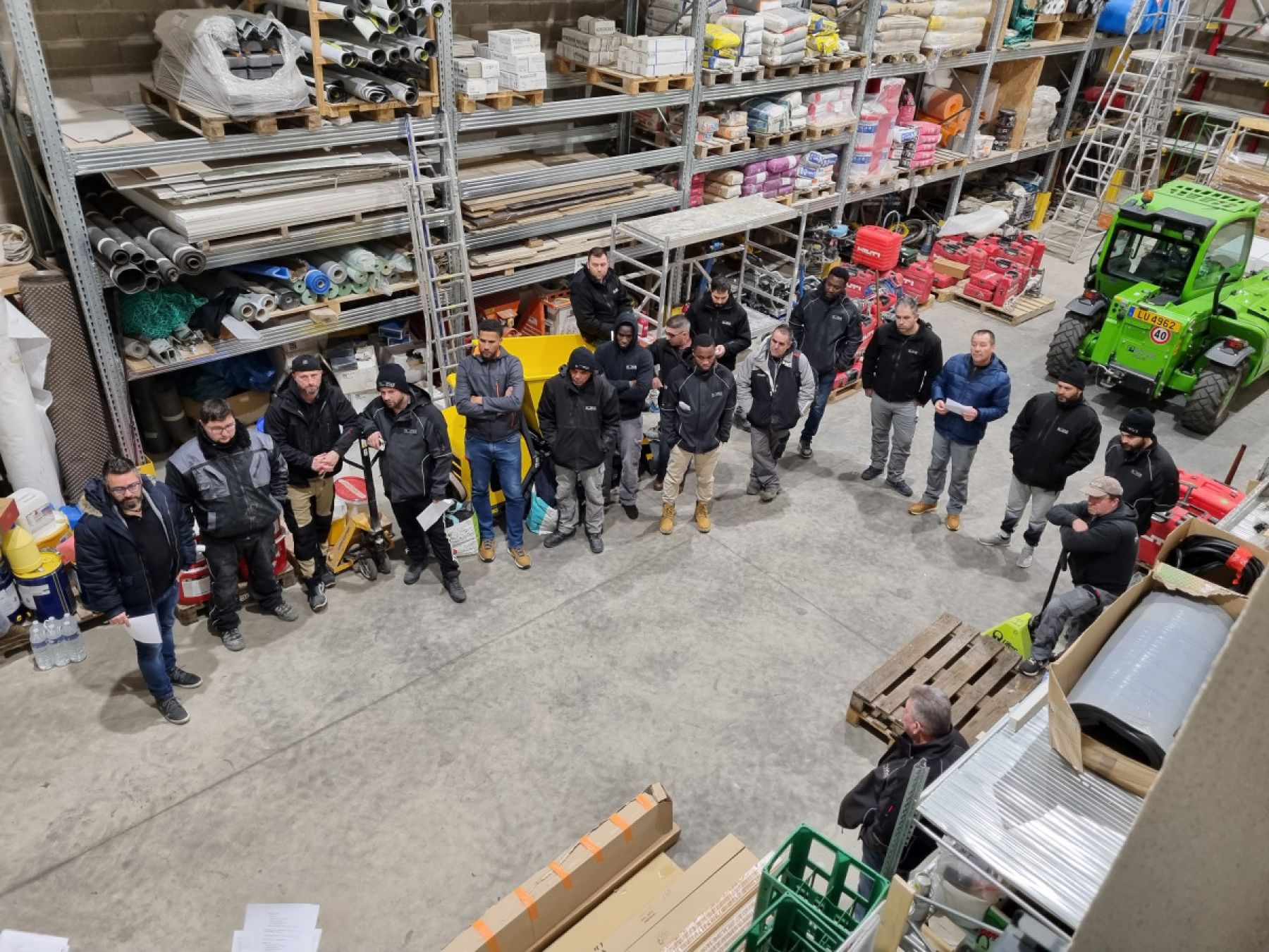 Motivéiert an no enger klenger Sëcherheets- an Gesondheetsformatioun sin eis Aarbëchter ab e Méinden rem op eisen Chantieren aktiv.