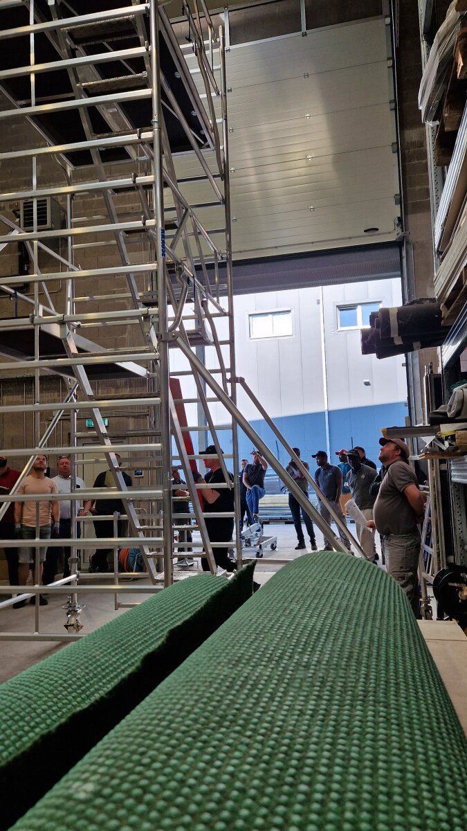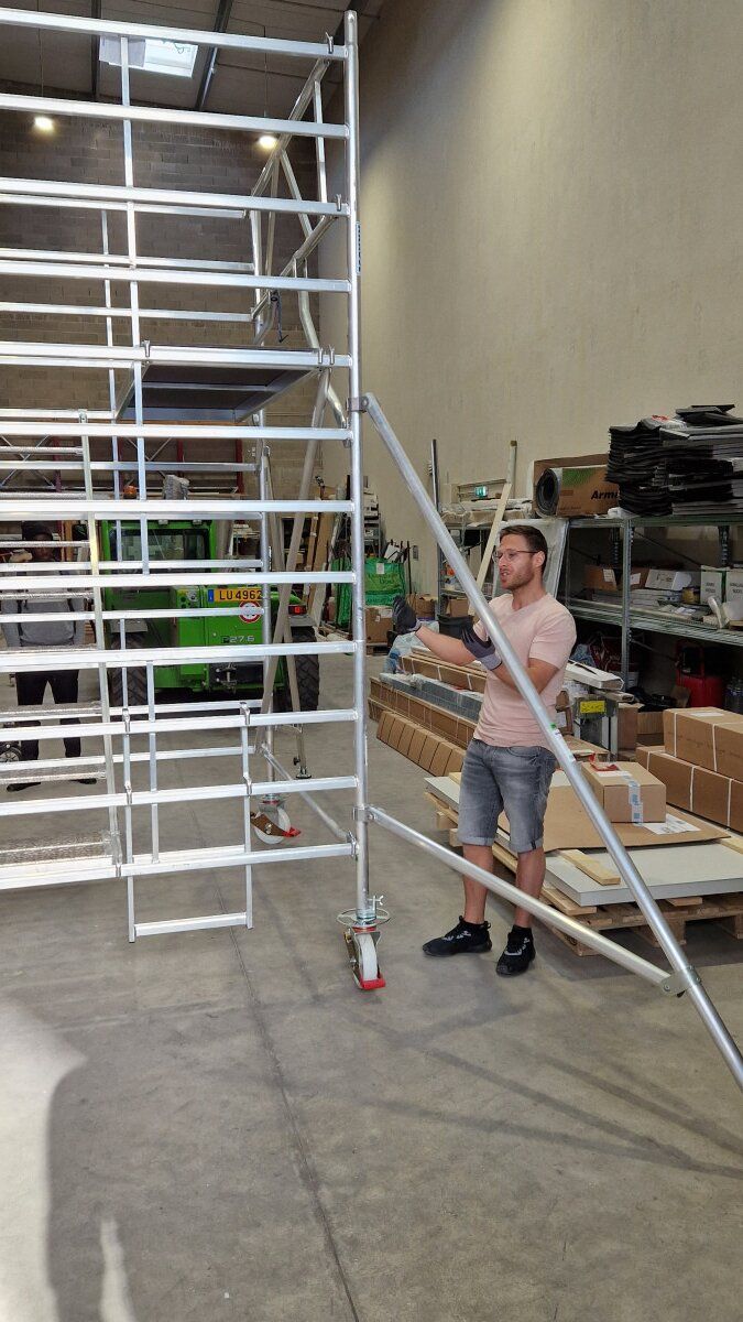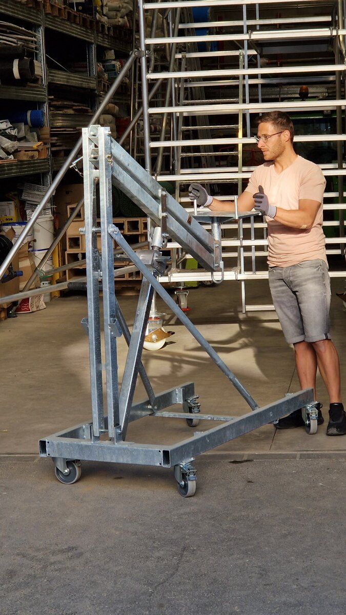 Haut sin z.B. en mechanëschen Lift fir stoolen Poutrellen opzehiewen, souwéi eng Rullstee mat komplettem Traapenhaus virgestallt gin.